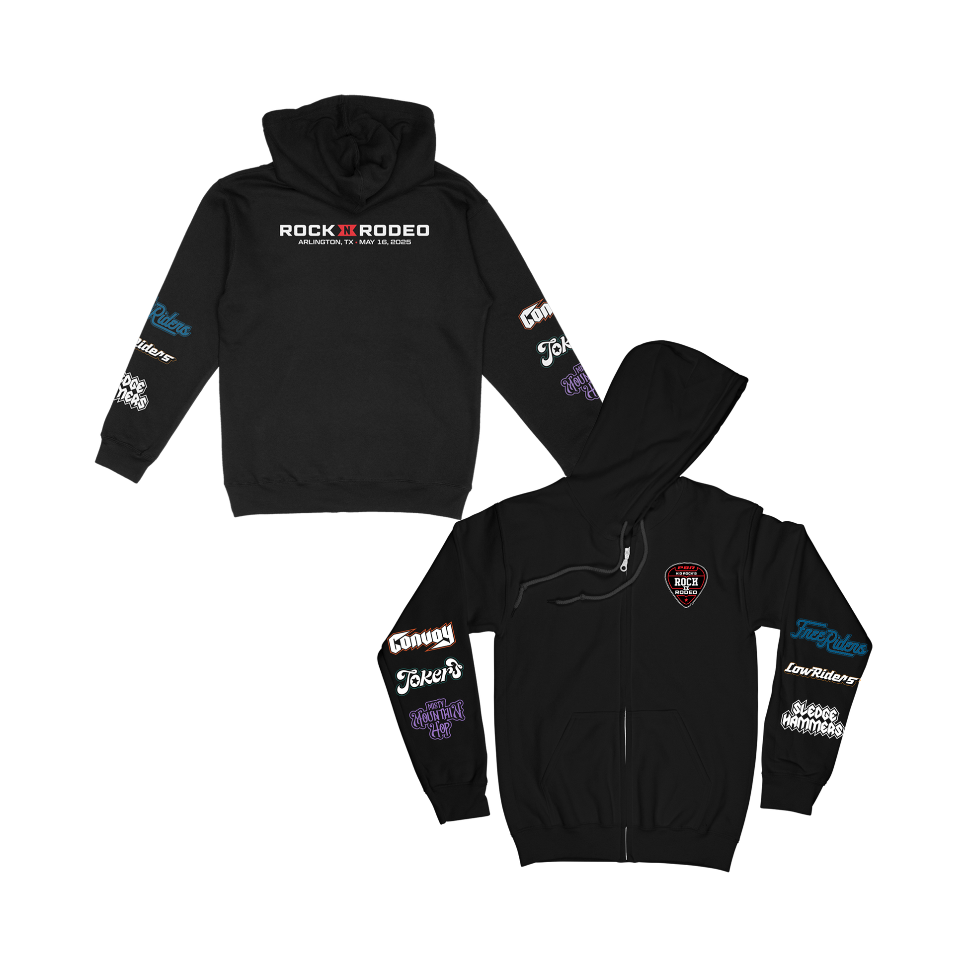 "Rock & Rodeo 2025" design printed on a black hoodie.